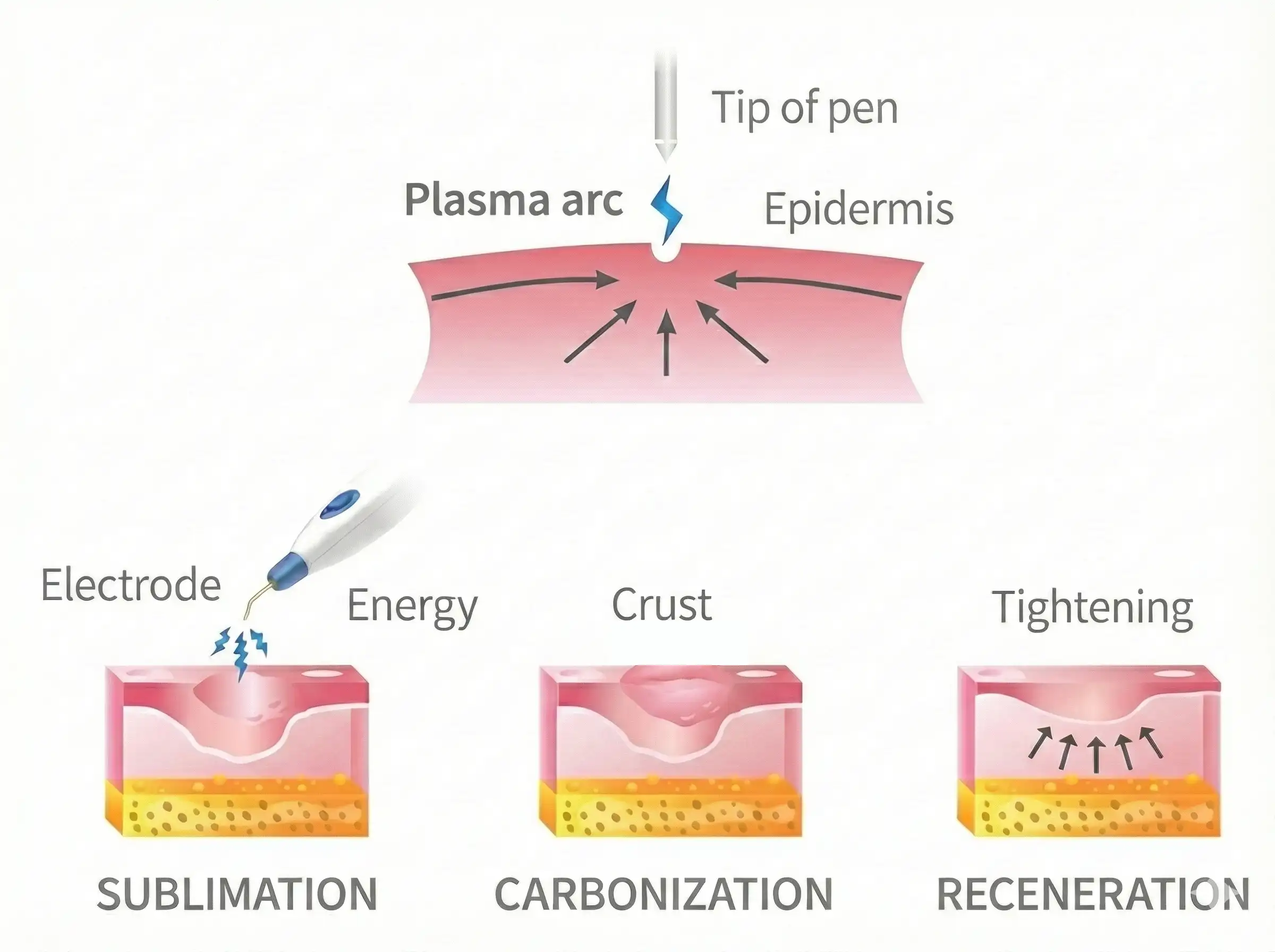 Arc plasma - Sublimation, Regeneration of fibroblasts and skin tightening